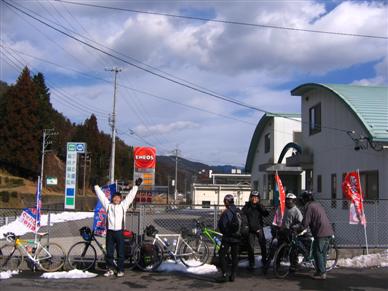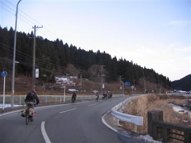 | ▲みんな寒くて小屋の影に隠れてます | ▲津具村、あと少しです。 |