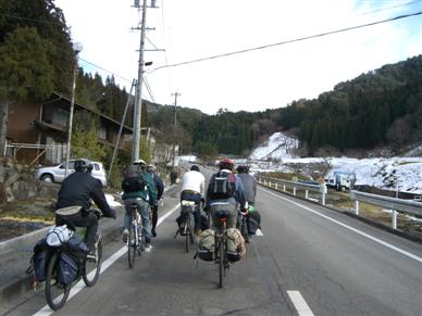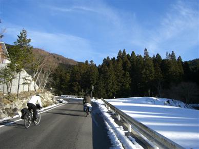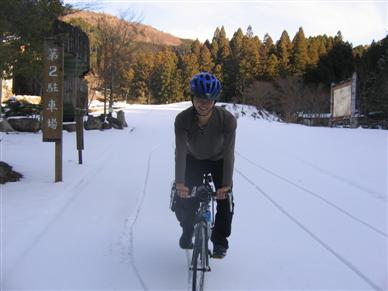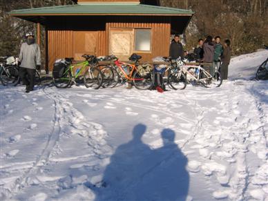 | ▲なかなか手ごたえのある登りです | ▲雪上サイクリング! |