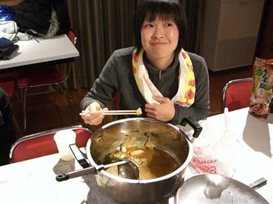 | ▲そして待ちに待った鍋パーティー♪ それでは皆さん、いっただっきまーす(^0^)/ | |