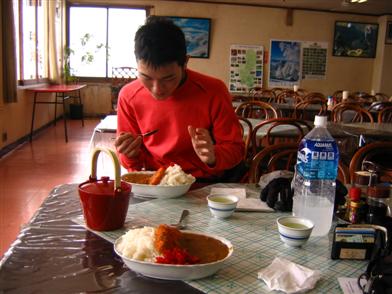 | ▲渋峠ヒュッテ制圧! | ▲昼はカレー |