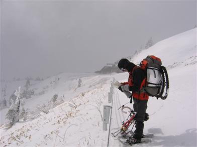 | ▲パトロール隊に回収サル | ▲ロープウェイ輪行 |