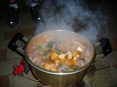 ![]() | 予定変更で恵那大橋の下でキャンプ。 やっぱり定番キムチ鍋!! とっても美味しかったですね♪ 上に浮いてるのはワラビです |