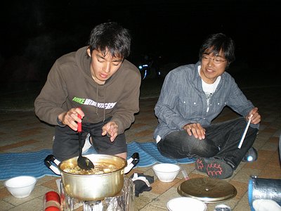 ![]() | みんなで鍋を囲んで語りあいました。 1年生もだんだん緊張感が薄れてきました。 |