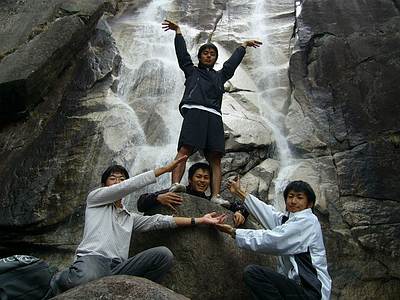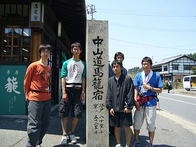 ![]() | みんなで1枚。オグさんの手が変なとこに 準備運動が済んだので 一気に馬篭をめざしました |
