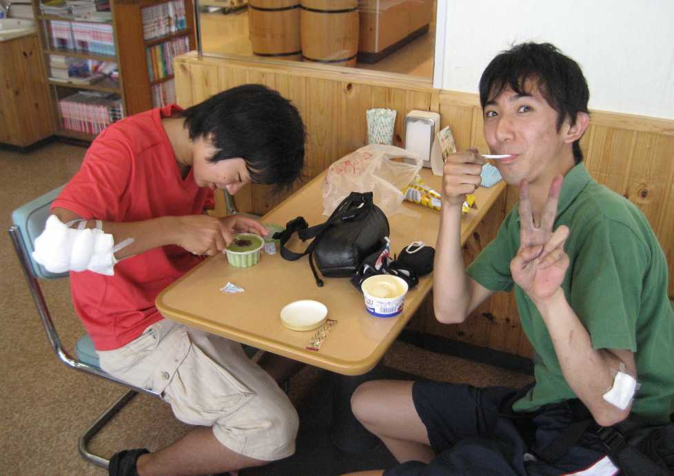 アイスを食って、元気を回復。1人はアイスをすくうエネルギーも残ってないそうです。