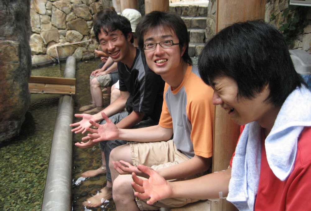 またまた、足湯に入ってます。好きですねぇ、この人たちも。