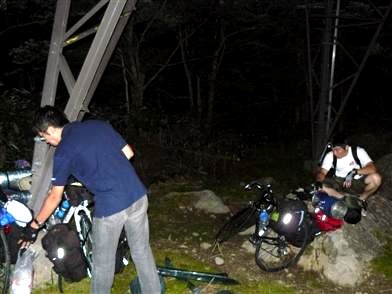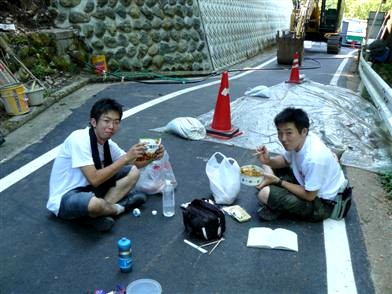 | ▲湧き水見つけたぞー | ▲工事現場でランチ |