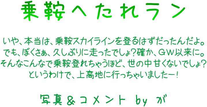 | ▲乗鞍行けれんかったけど、夏の信州を感じるいいランになりましたー! | |