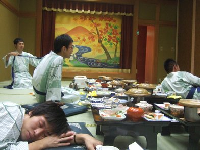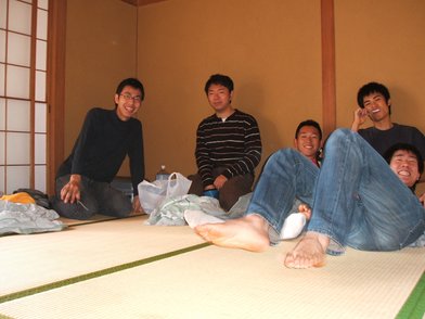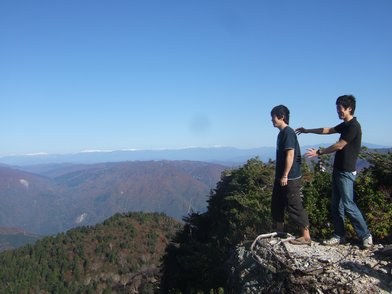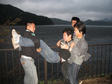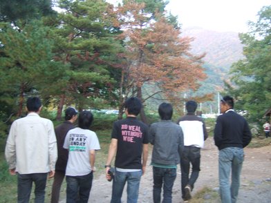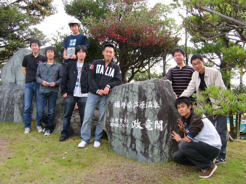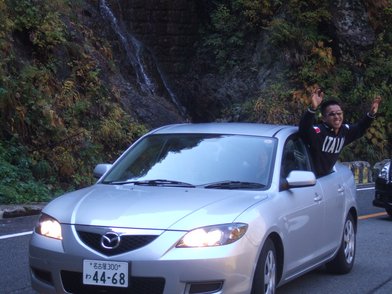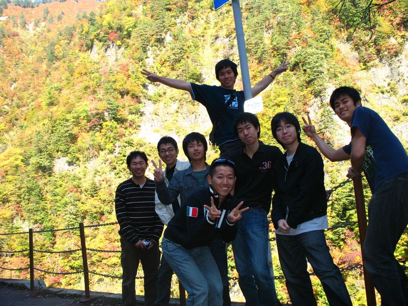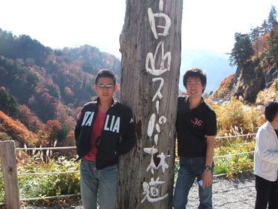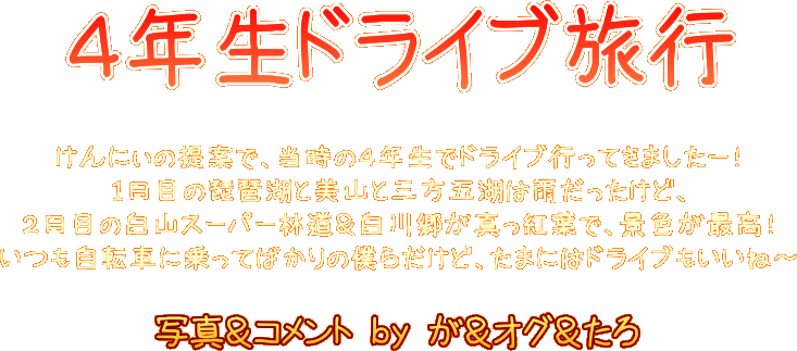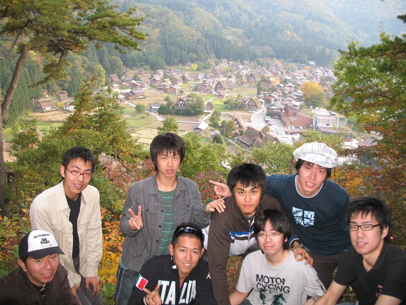 | ▲白川郷をバックに撮ってもらいました。同期だけで出かけるのってなかなかいいね、かなり楽しいドライブでしたー! |