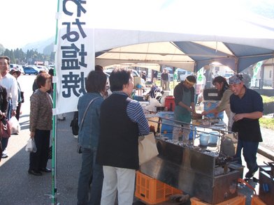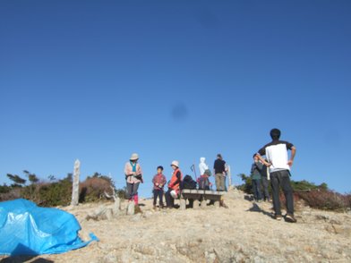 | ▲秋の太陽に輝く対岸をバックにみんなで撮りましたー! |