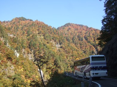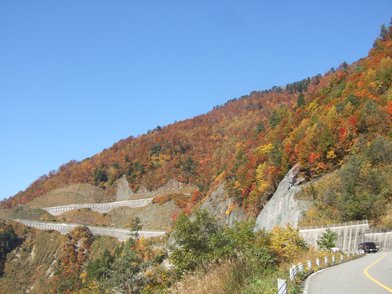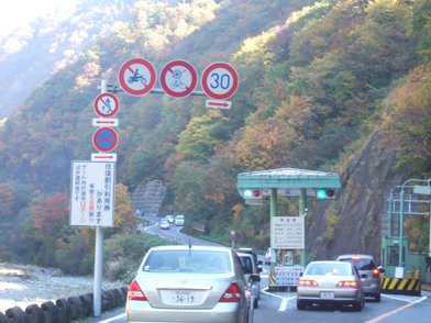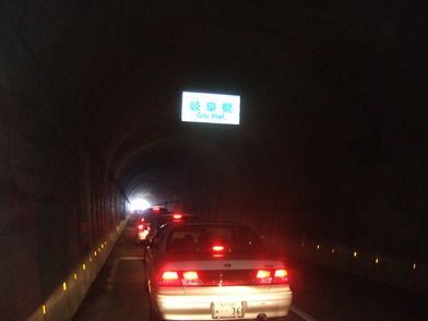 | ▲トンネルは大渋滞!もうすぐ白河村です |