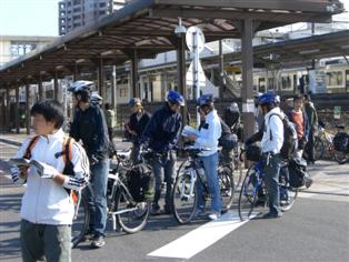 ![]() スタートは野洲駅。多くの人が自走で合流してくれました! |