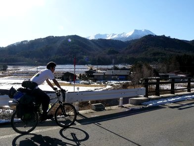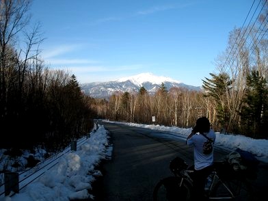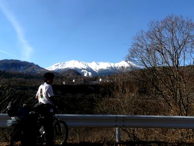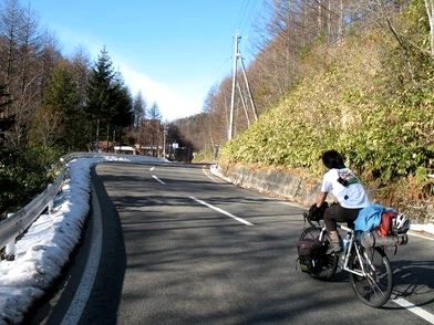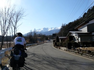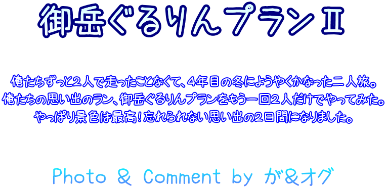 | ▲こっちは御岳が見えてきたぞー! | ▲車がぜんぜんいない冬の道 |