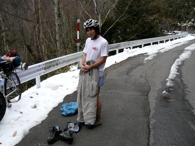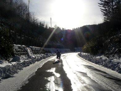 | ▲峠到着〜ここ懐かしいなあ | ▲うぉっ、道路が凍りだした |