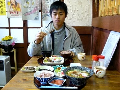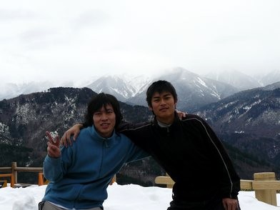 | ▲朝から250g食べるオグさん | ▲残念!乗鞍が雲に隠れてます。 |