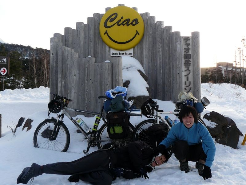 | ▲チャオ御岳到着〜!オグさんは、雪が冷たいらしいです。 | |