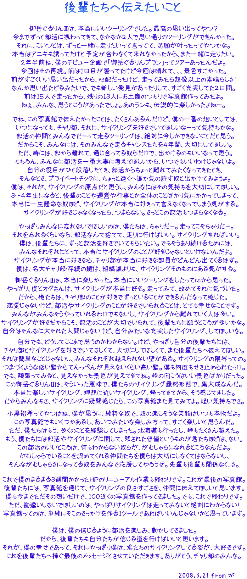 | ▲オグさんと初めての2人ツーリング、ずっと楽しみだったんだなあ。 | |