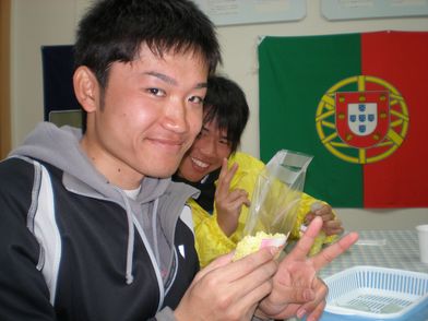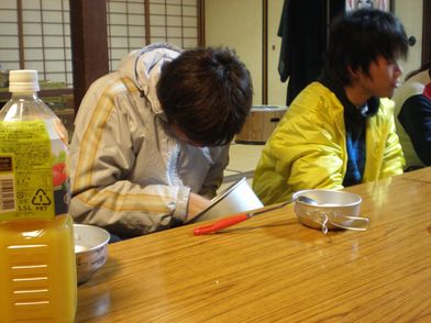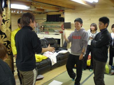 ![]() | その日の夜はお寺の地下室でレクリエーション。 みんな緊張感が解けてきてます。 |