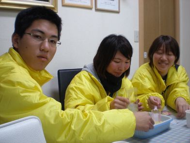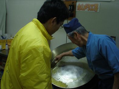![]() | 金平糖講座のあとは みんなで金平糖の色と味をつけました。 職人のじいちゃんがいいキャラしてました♪ |