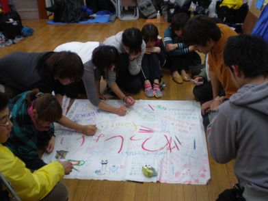 ![]() | 初日の夜はみんなで体育館に集まってレクリエーション |