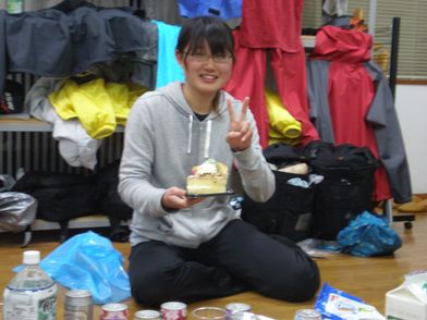 | 頑張ってくれた班長のあやかさんに ケーキのプレゼント。 この辺の気遣いができるってのが、この班の魅力です。 | ![]() |