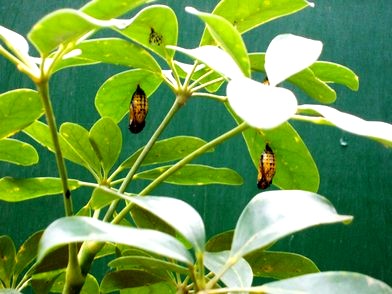 | オオゴマダラのさなぎ | 寄ってきすぎ、助けて〜 |