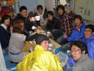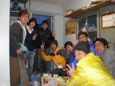 ちゃりぽり〜で同じ班だった香大のたっつんとかぉりを頼って 合宿が終わった23日に香大に行って一緒に鍋しながら飲み語りしてきました〜 あいにくの雨にも関わらず入れ替わり立ち代わりたくさんの人たちが来てくれました。 名大からはすずケン、そっさん、まっきー、ヒグ、谷君、なんちゃんの6人が参加しました〜