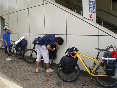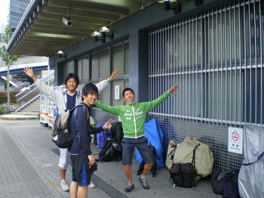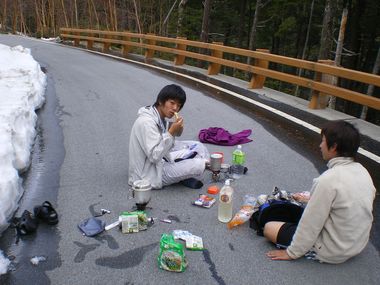 この日は、金峰温泉で一泊です。 おじさんがとってもいい人で、宿の前の東屋を貸してくれました。。 | |