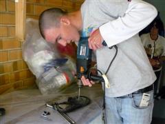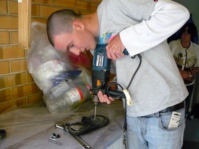 2008/12/13(47日目) Kersbrook, SA 4497km 僕のSPDサンダルを改造するPatrick