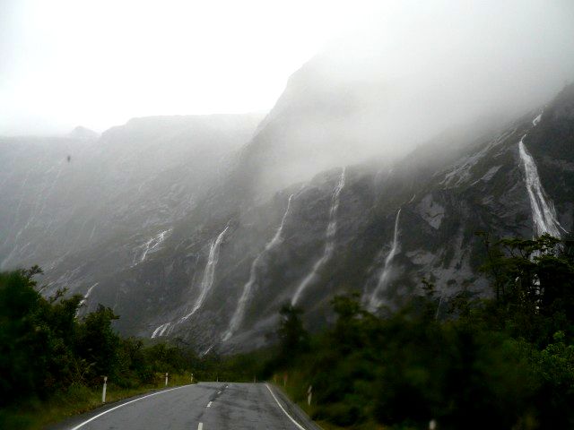 2008/12/28(62日目) Milford Sound, Fiordland 5675km 雨が降ると数百もの滝が現れる