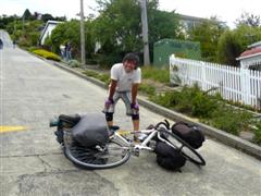 2009/01/01(66日目) Dunedin, Otago 6257km 世界最傾斜の坂ボールドウィンSt、77%