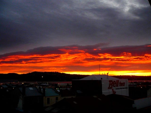 2009/01/02(67日目) Dunedin, Otago 6257km 真っ赤に燃えるような朝焼け