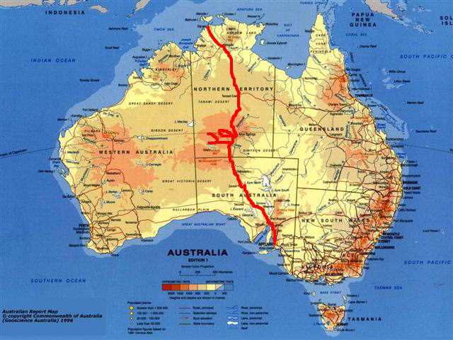 2008/12/01(35日目) Glendambo, SA 3800km 80kgの自転車で一日にこいだ距離