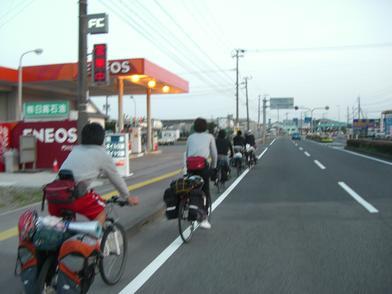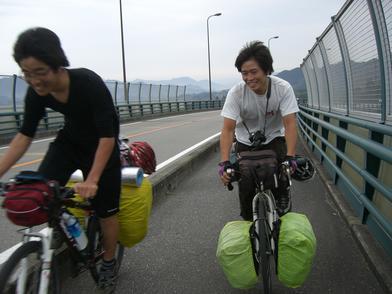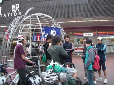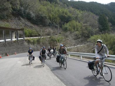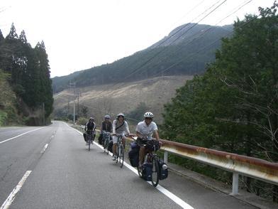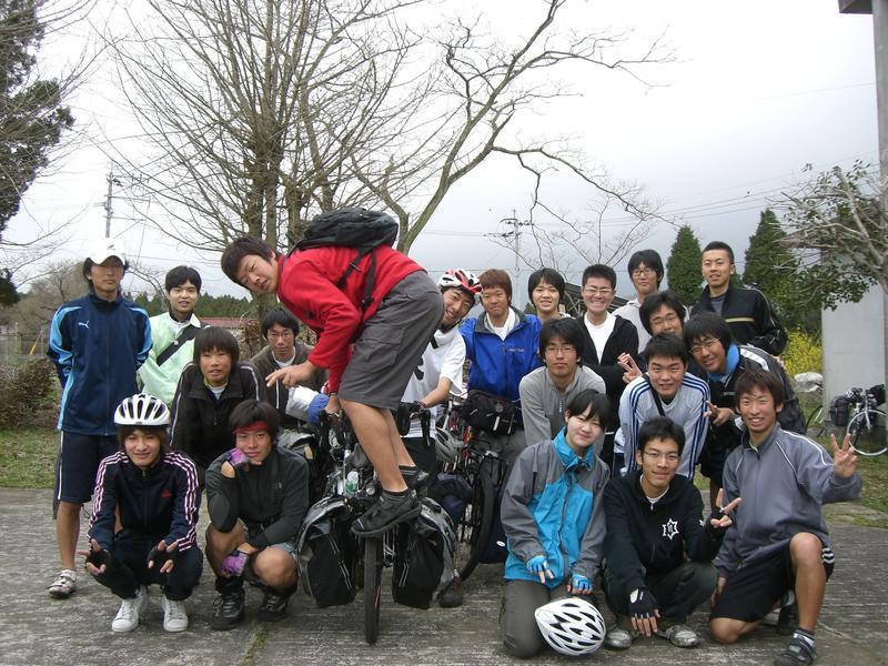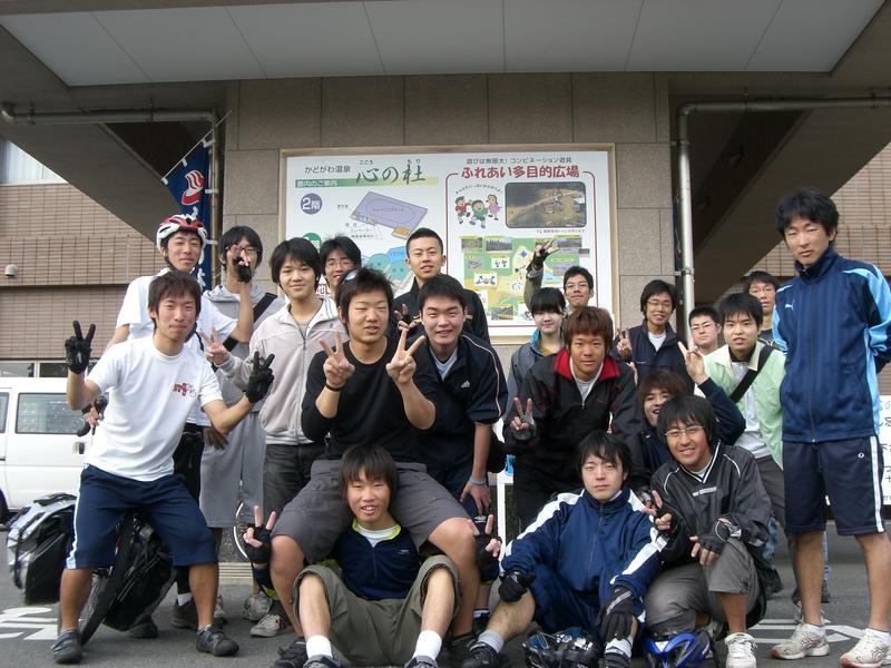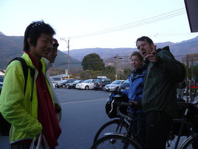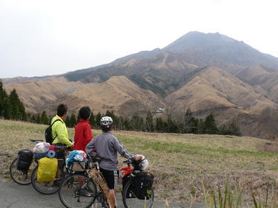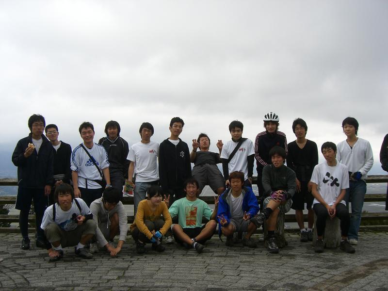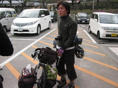 | ▲二日目の朝、高千穂YHの前で。 |