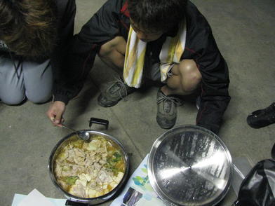 | ◆みんなして・・・ | ◆今夜は名大チャリ部特製キムチ鍋 |
