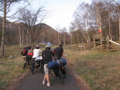 | ◆息も絶え絶えにキャンプ場到着ー。 | ◆ 2日目、今日がメインだよ〜。 |