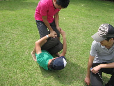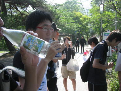 | ◆昼食後、養老の滝組と天命反転地組に別れます。 | ◆新入生にちぎられました。 |