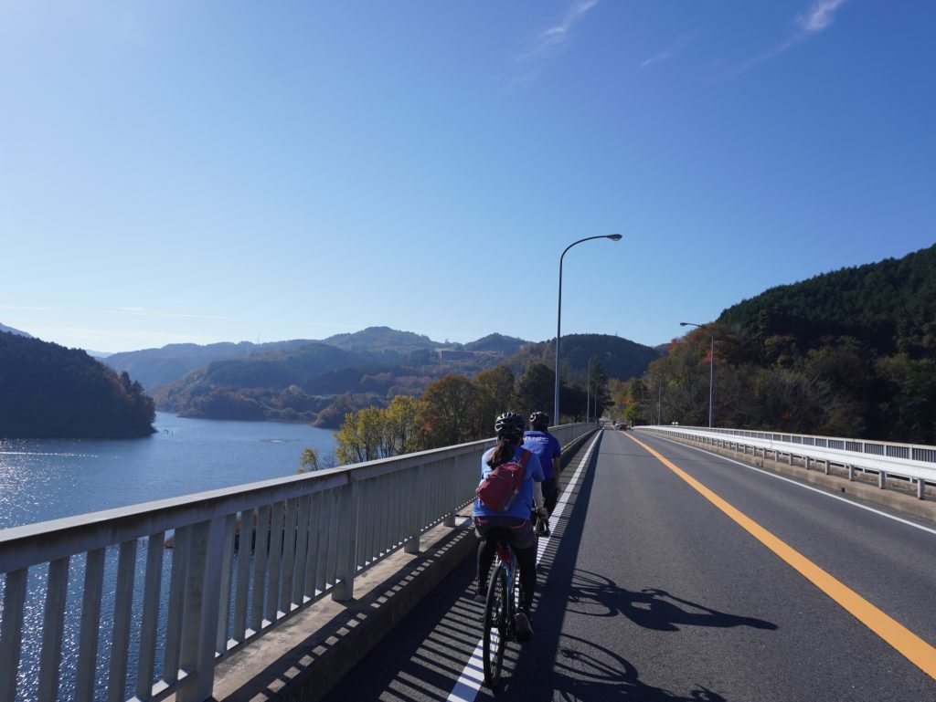 道中、阿木川湖の浮島で小休憩。景色がきれい!